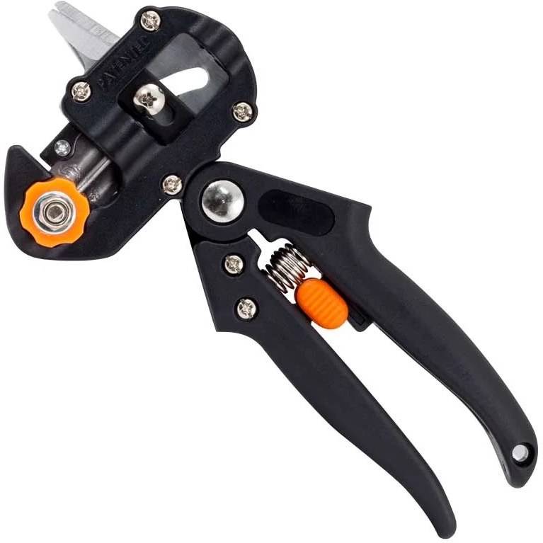 علاوه بر بخش پیوندزنی، قسمت پایینی این ابزار یک قیچی هرس قدرتمند است. شما میتوانید ابتدا شاخههای اضافی را هرس کرده و بلافاصله با همان ابزار، عملیات پیوند را انجام دهید.