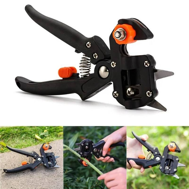 علاوه بر بخش پیوندزنی، قسمت پایینی این ابزار یک قیچی هرس قدرتمند است. شما میتوانید ابتدا شاخههای اضافی را هرس کرده و بلافاصله با همان ابزار، عملیات پیوند را انجام دهید.